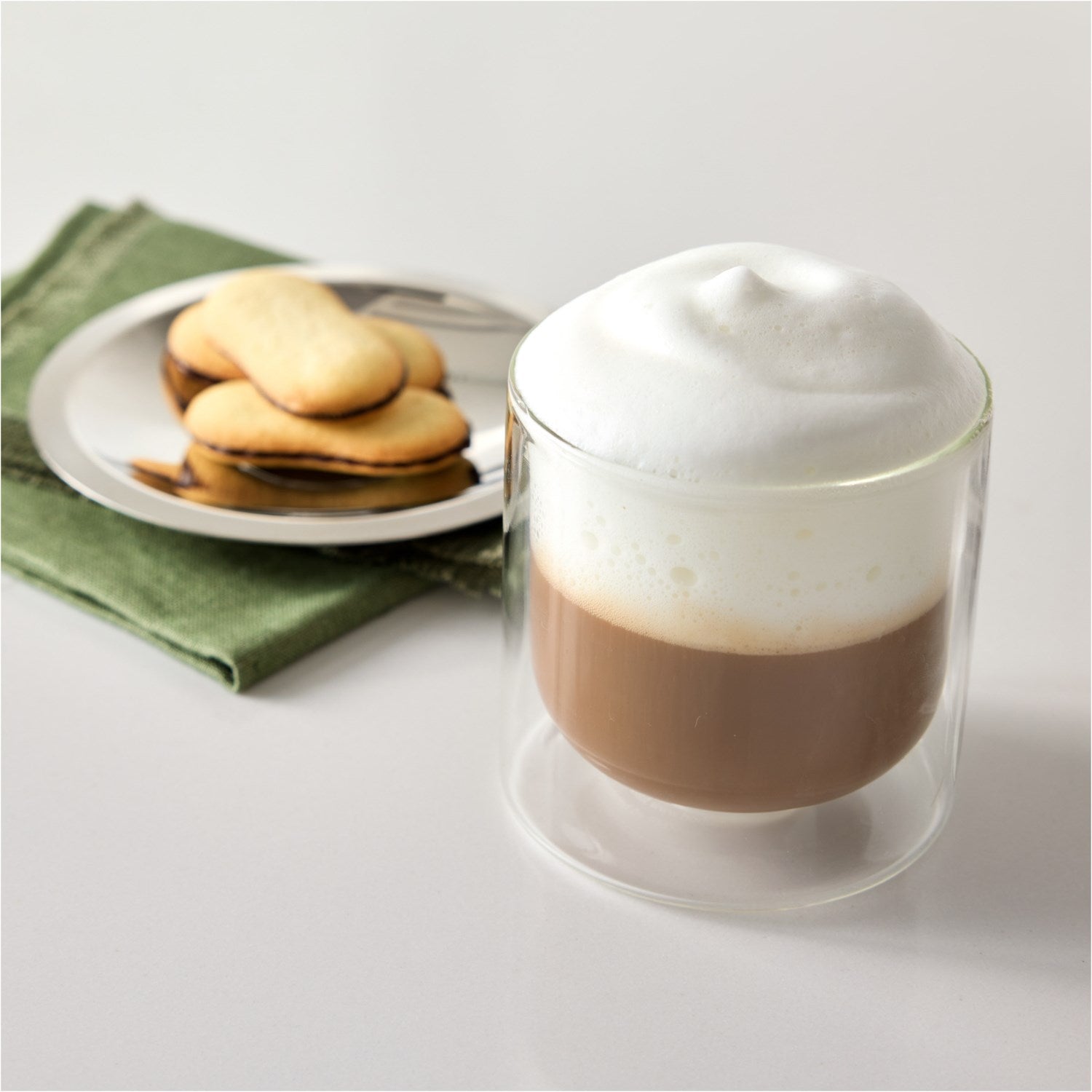 Verwandeln Sie Kuhmilch oder pflanzliche Milchalternativen in seidig-glatten Mikroschaum, während der integrierte Schneebesen des Milchkännchens die Arbeit für Sie erledigt.