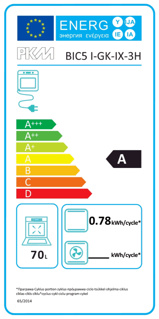 Das BIC 5-I GK IX-3H verbraucht 0,78 kWh bei Ober-/Unterhitze. Der Lieferumfang des BIC 5-I GK IX-3H enthält 1 Grillrost und 1 Fettpfanne.