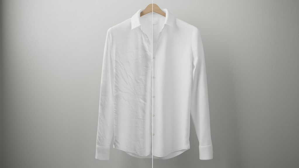 - 1 Untersuchung Nr. E-0323-PT-22 der Deutschen Institute für Textil- und Faserforschung Denkendorf (DITF) vom 12.07.22, bezogen auf die Knitterfaltenreduktion bei handelsüblicher Baumwollbekleidung (T-Shirts und Oberhemden) im Programm smartFinish nach DIN EN ISO 15487 im Vergleich zu nicht mit smartFinish behandelten Textilien.